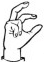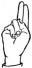 На ћирилици написано МИЊА БЕЛЕНЗАДА састоји се из 13 слова [?]. Исписано ћириличном једноручном азбуком за глувонеме: